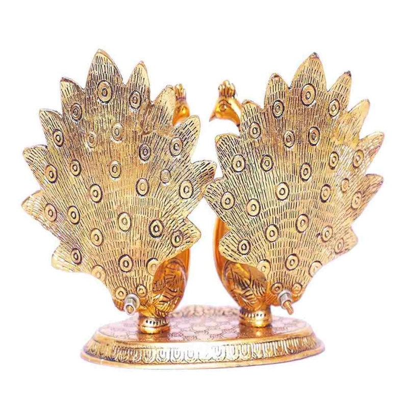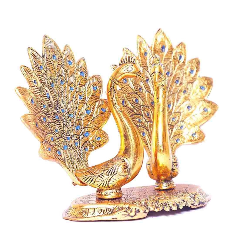Elevate your home décor with the KridayKraft Metal Peacock Couple Statue, crafted from high-quality aluminium with a glossy gold finish. Symbolizing love, harmony, and elegance, this beautifully detailed showpiece adds a touch of sophistication to living rooms, offices, restaurants, and more. Ideal as a gift or decorative accent, it enhances any space with its artistic charm and spiritual significance.