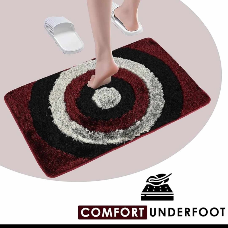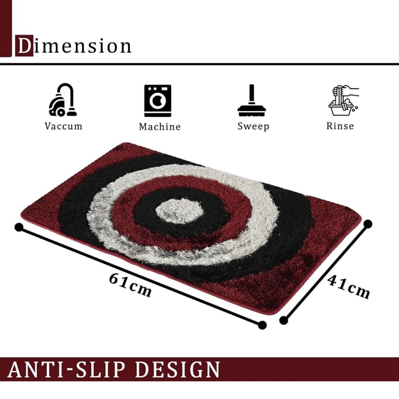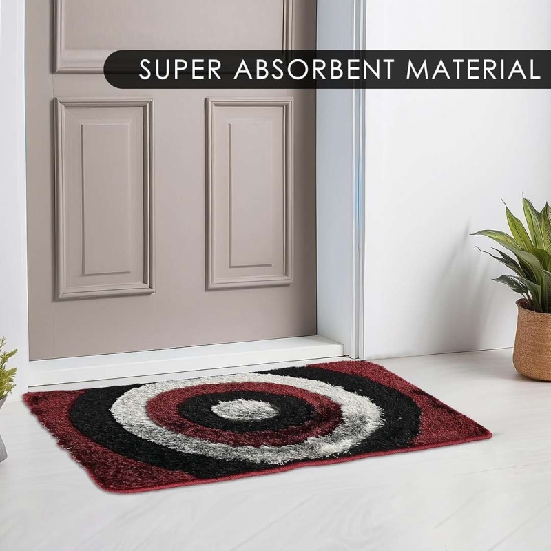This Kuber Industries tufted polyester doormat features a soft, absorbent surface with a durable anti-slip rubber backing, making it ideal for indoor use. Designed in an elegant Grey & Maroon circle pattern, it provides comfort underfoot, quick water absorption, and easy machine-wash maintenance. Perfect for doorways, bathrooms, and high-traffic areas, this rectangular doormat keeps your floors clean, dry, and stylish.