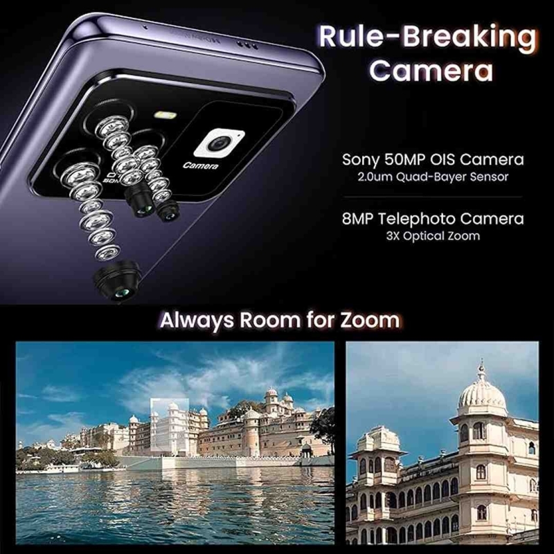| Rear Camera Setup | 50MP Sony + 8MP Telephoto (3X Optical Zoom) + 8MP Ultrawide |