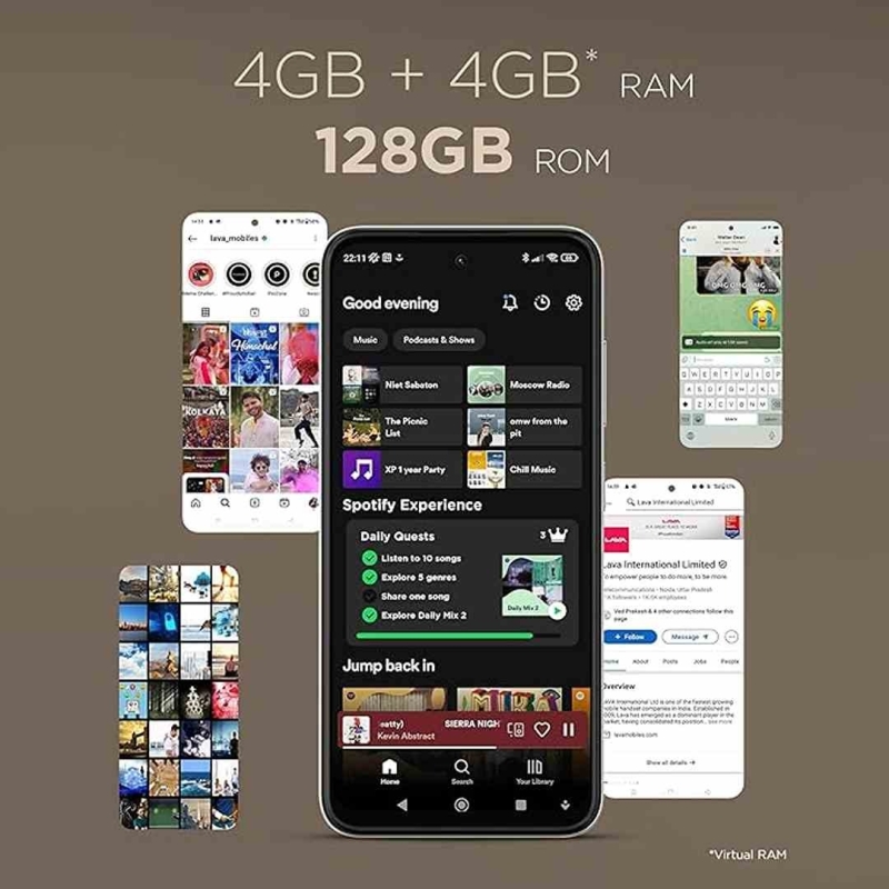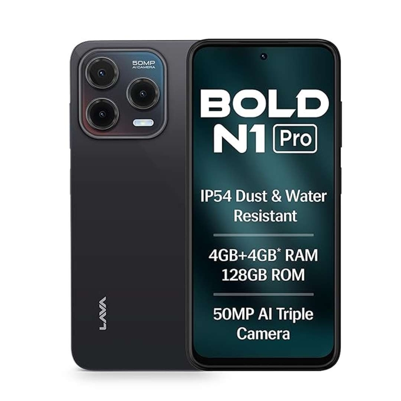 The Lava Bold N1 Pro delivers smooth performance with its 4GB RAM (expandable to 8GB), 128GB storage, and a fast 2.4GHz octa-core processor. Capture vivid photos with a 50MP AI triple rear camera and clear selfies with an 8MP front camera. Its 6.67" HD+ 120Hz display ensures vibrant visuals, while the 5000mAh battery offers long-lasting usage. With clean Android 14, an in-display fingerprint sensor, and IP54 water resistance, it’s built for reliable everyday use, gaming, and multimedia.