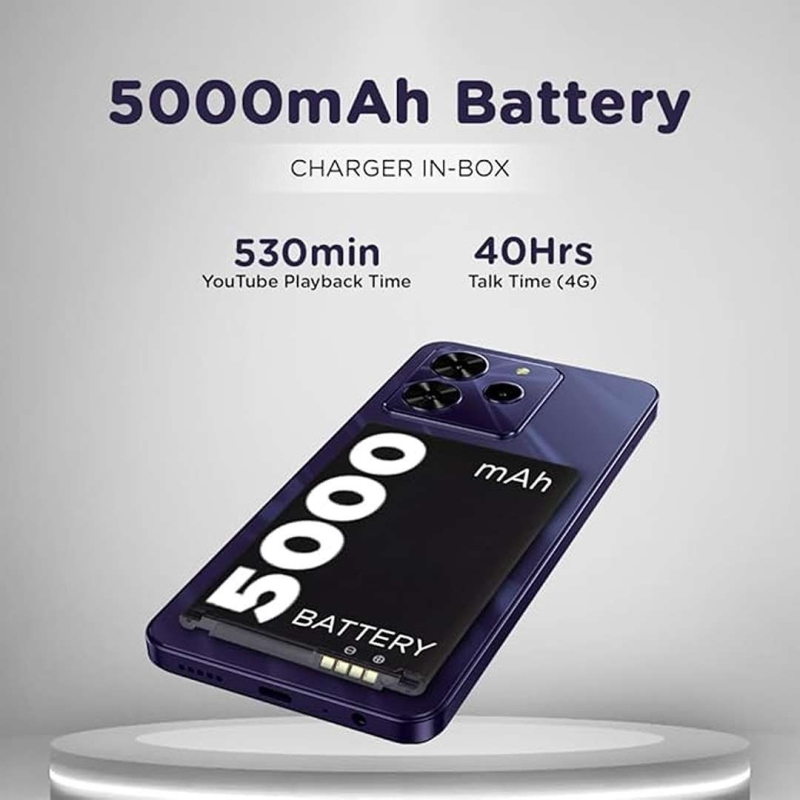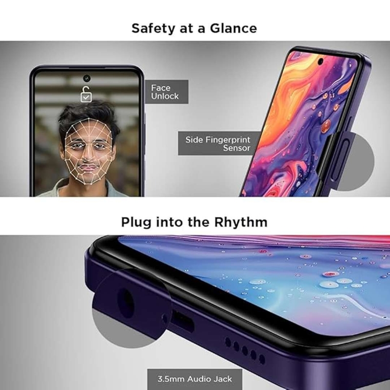 The Lava smartphone features a vibrant 6.56" HD+ display, a powerful octa-core processor, and 4GB RAM with 4GB expandable RAM for smooth performance. Its 50MP AI triple rear camera and 8MP selfie camera deliver detailed and clear photos, while the 5000mAh battery ensures long-lasting usage. With fast charging support, dual SIM connectivity, face unlock, side fingerprint sensor, and ample expandable storage up to 1TB, it is an ideal choice for everyday use, entertainment, and photography.