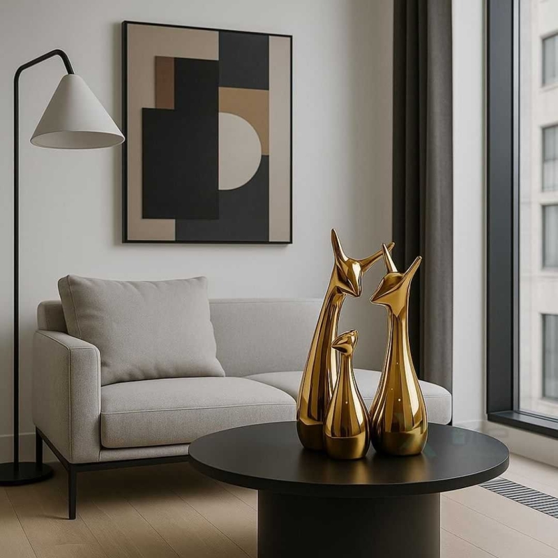 This elegant Golden Deer Family set by LIFEHAXTORE features three premium ceramic figurines finished in a luxurious piano-gloss gold. Symbolizing harmony, luck, and prosperity, this deer family makes a perfect décor accent for living rooms, hallways, offices, and gifting occasions. Durable, beautifully crafted, and ideal for enhancing modern or traditional interiors.