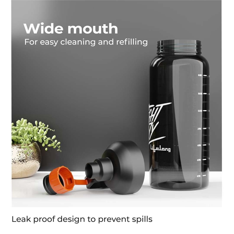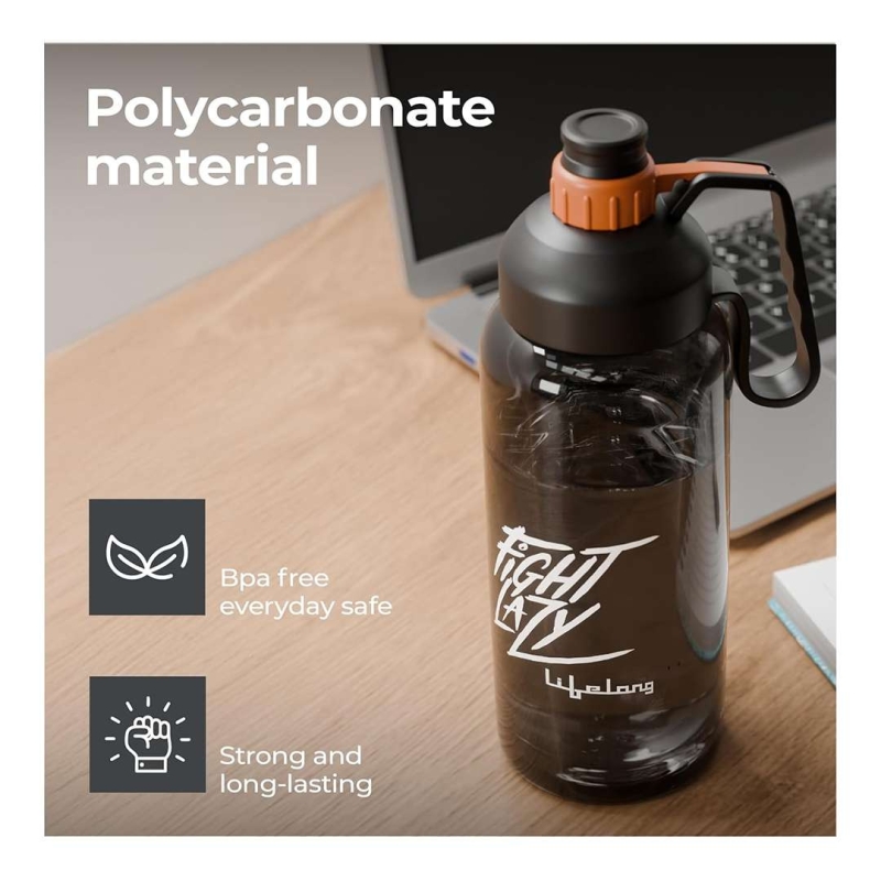 The Lifelong 1.8L Matte-Black Sports Bottle is a durable, lightweight, and BPA-free plastic water bottle designed for gym, sports, outdoor activities, and daily hydration. Featuring a wide mouth for easy filling and cleaning, and an ergonomic handle for comfortable carrying, it keeps you hydrated without frequent refills.