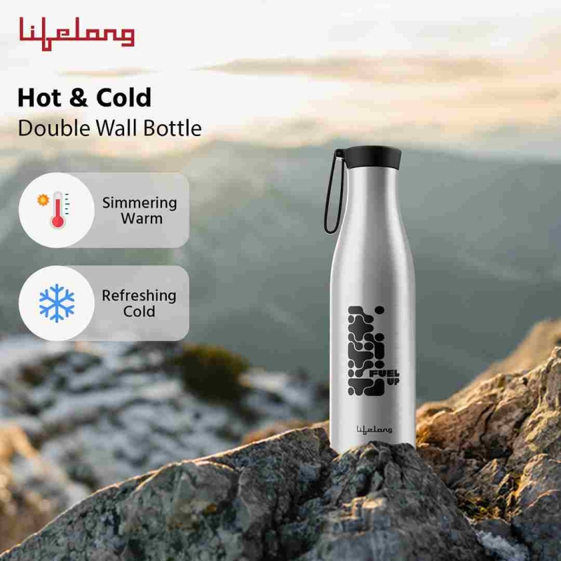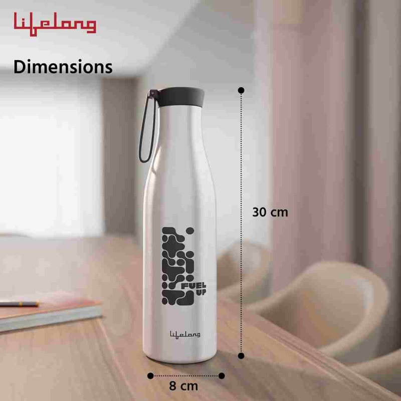 The Lifelong 900ml Silver Vacuum Insulated Bottle features premium stainless steel construction with double-wall insulation to keep beverages hot or cold for up to 24 hours. Leakproof, break-resistant, and travel-friendly, it is perfect for office, travel, gym, or outdoor use. Its sleek silver finish offers both durability and a modern, stylish look.