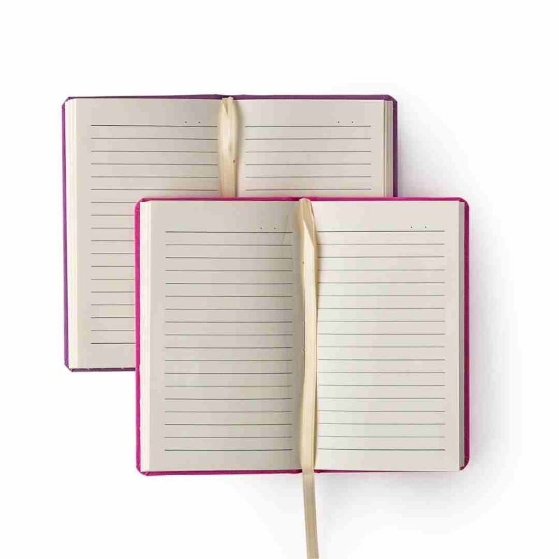 The Kitabby Linen A6 Hard Bound Notebook by Mahavir Industries features a durable linen fabric cover in Aqua Blue and Red, with an elastic band closure and ribbon bookmark. It includes 192 ruled pages of 80gsm acid-free, archival-quality paper that resists ink bleedthrough. Compact and stylish, this A6-sized notebook (15 x 9 cm) is perfect for personal, professional, or educational note-taking.