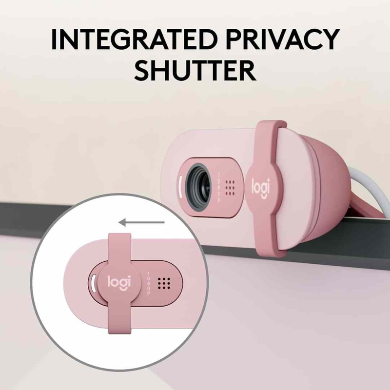 The Logitech Brio 100 is a compact Full HD 1080p webcam designed to deliver clearer, brighter video calls with its RightLight auto-light balance technology. It features an integrated privacy shutter, built-in microphone, and easy plug-and-play connectivity via USB. Compatible with major video-calling platforms, this lightweight and stylish rose-coloured webcam is ideal for home and office use.