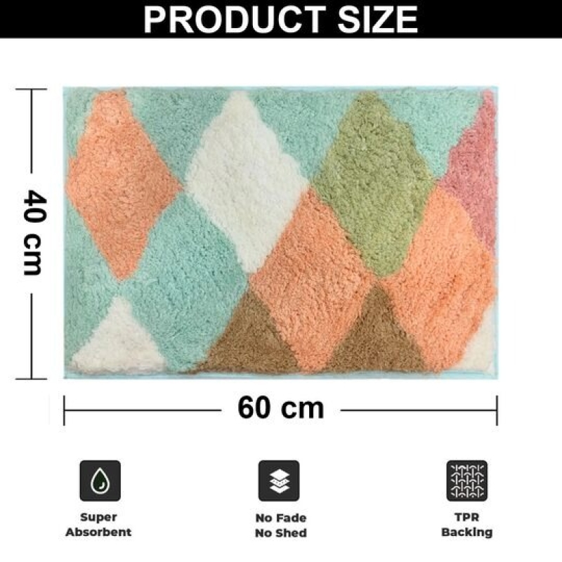 The Luxe Home International "Canada Diamond” bath mat is crafted from ultra-soft microfiber with a high-pile tufted design for superior comfort and absorption. Its non-slip TPR backing ensures safety in high-moisture areas, making it perfect for bathrooms, kitchens, and entryways. Lightweight, washable, and stylish, this mat keeps your floors dry while adding a modern Diamond touch to your home décor.