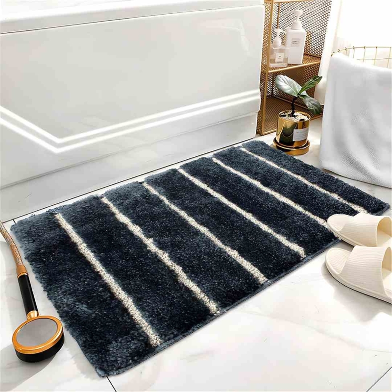 The LUXE HOME INTERNATIONAL Mexico Mat is a high-pile, tufted microfiber bath mat designed for comfort, absorbency, and safety. Featuring a non-slip thermoplastic rubber (TPR) backing, this soft and quick-drying mat is ideal for bathrooms, kitchens, bedrooms, or living areas. Durable and machine washable, it protects floors from moisture while adding a classic, striped style to your home.