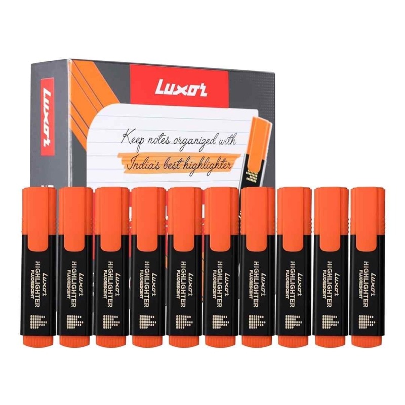 Luxor Orange Highlighter (Pack of 10) features bold chisel-tip ink for bright, long-lasting highlights. Perfect for students and professionals, it ensures vibrant, durable, and precise highlighting for notes, summaries, and study material.