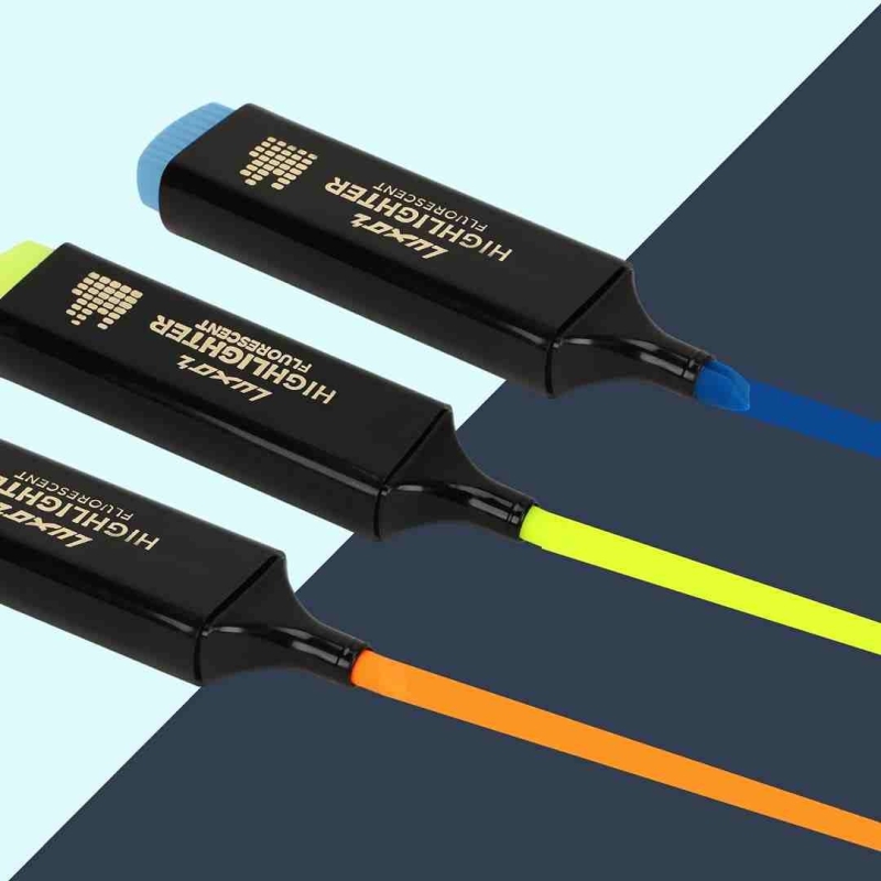 Luxor Orange Highlighter Pen (Pack of 10) features vibrant, smear-resistant chisel-tip ink for precise highlighting. Perfect for students, professionals, and educators to enhance note-taking, studying, and office tasks.