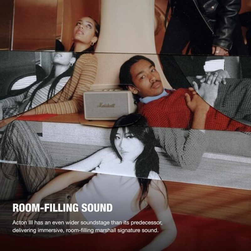 The Marshall Acton III delivers powerful 60W stereo sound with a re-engineered wider soundstage that fills the room from every angle. Featuring Bluetooth 5.2, classic Marshall controls, and Dynamic Loudness, it ensures rich, balanced audio at any volume. Designed with sustainability in mind, it uses 70% recycled plastic, vegan materials, and offers seamless wired or wireless connectivity—making it a stylish and high-performance speaker for premium home entertainment.