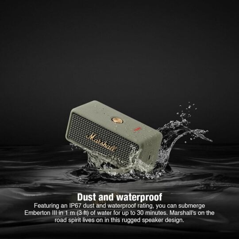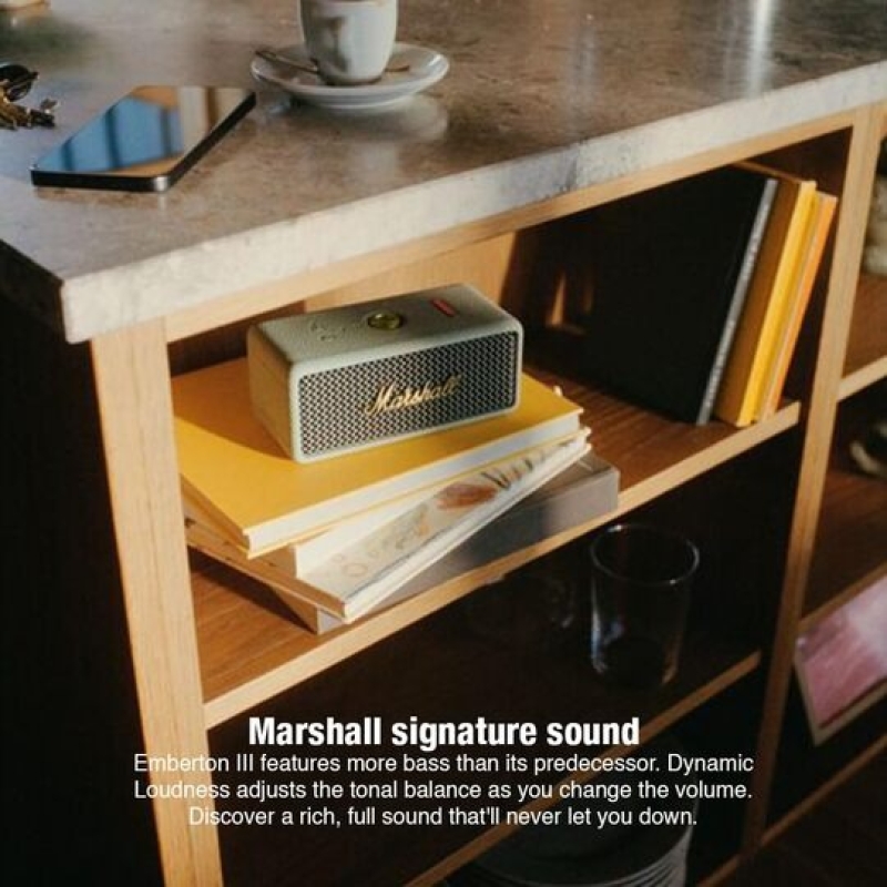The Marshall Emberton III delivers powerful Marshall signature sound with enhanced bass and immersive True Stereophonic 360° audio. Designed for life on the move, it offers 32+ hours of playtime, fast charging, and a rugged IP67 dust & waterproof build. With a built-in microphone for hands-free calls and a compact, iconic design, Emberton III is a perfect blend of style, durability, and performance.