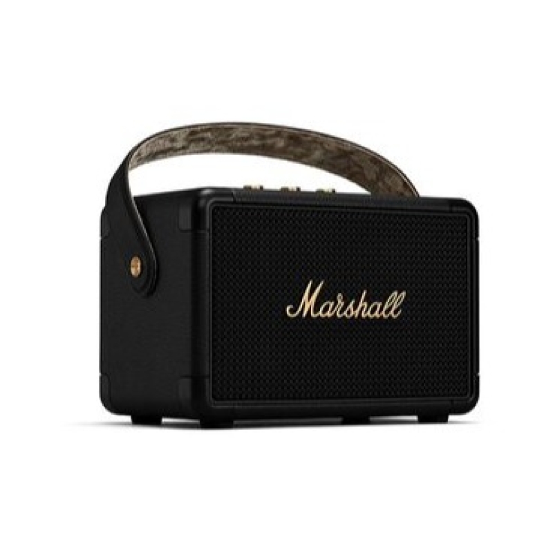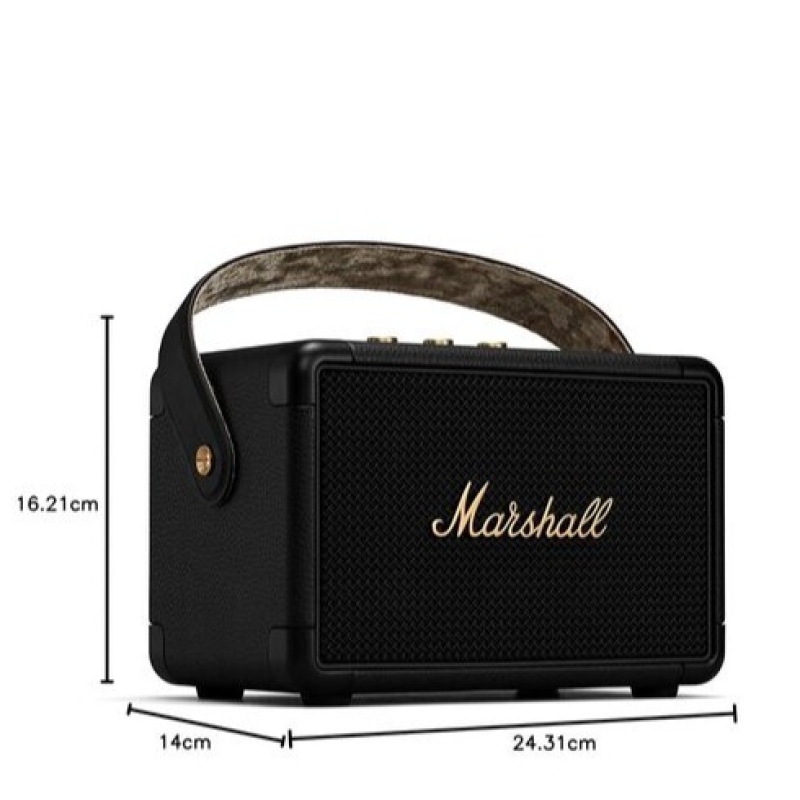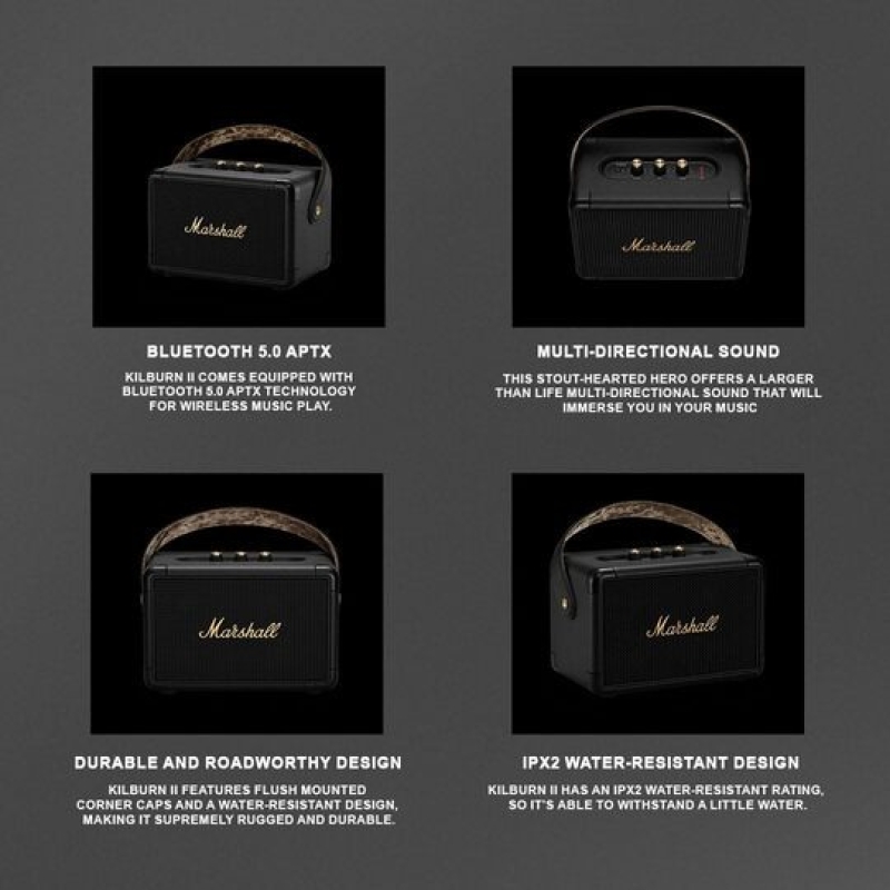 The Marshall Kilburn II is a rugged, portable Bluetooth speaker that delivers powerful, room-filling sound with iconic Marshall design. Featuring Bluetooth 5.0 with aptX, multi-directional audio, and up to 20+ hours of battery life, it’s built for immersive music experiences both indoors and on the go. Its durable metal construction, classic Black & Brass finish, and signature Marshall sound make it a premium portable speaker for music lovers.