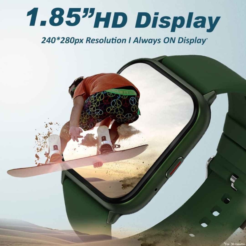 The Maxima Max Pro Sky Smartwatch features a large 1.85” HD display with 550 Nits brightness and a 30-minute Always-On Display. Equipped with Bluetooth calling, AI voice assistant, personalized QR code support, and a full health suite including HR, SpO2, stress, and sleep monitoring, it combines functionality and style. Its IP67 water resistance and 7-day battery life make it a reliable smart companion for everyday life.