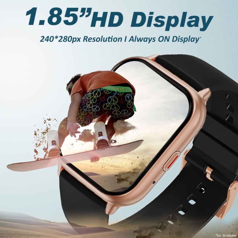 The Maxima Max Pro Sky Smartwatch features a large 1.85” HD display with 550 Nits brightness and a 30-minute Always-On Display. Equipped with Bluetooth calling, AI voice assistant, personalized QR code support, and a full health suite including HR, SpO2, stress, and sleep monitoring, it combines functionality and style. Its IP67 water resistance and 7-day battery life make it a reliable smart companion for everyday life.