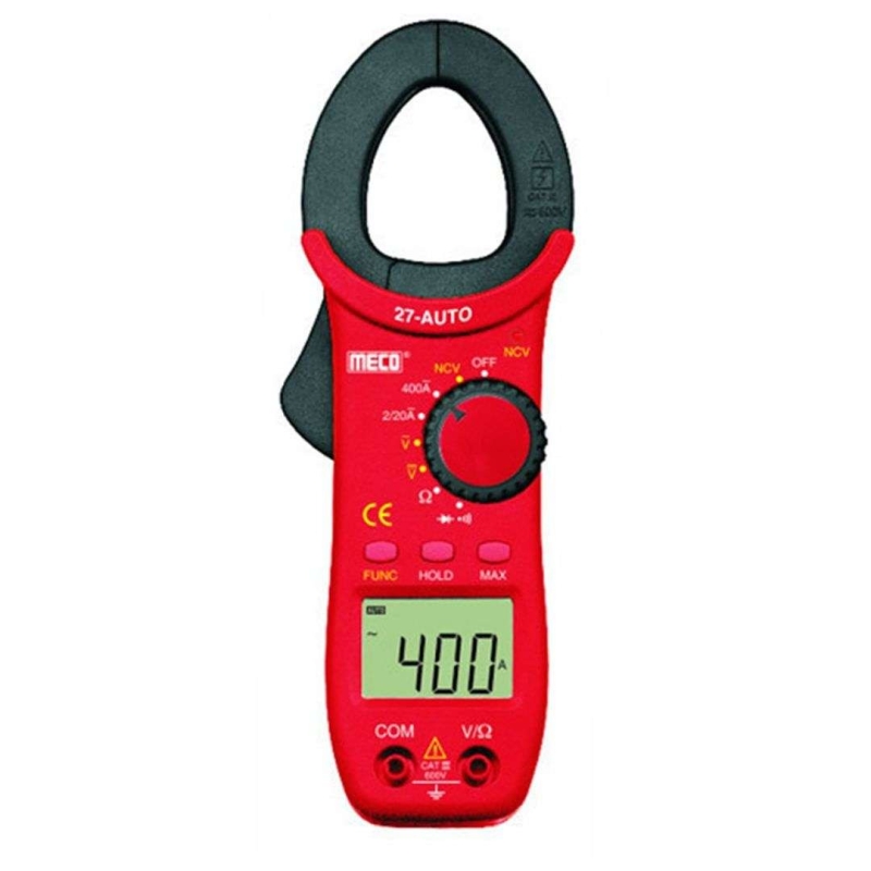 The MECO ELEVERDE 27-Auto Digital Clamp Meter is a compact, battery-powered measuring instrument designed for safe and accurate electrical measurements. With a 25 mm jaw opening, digital display, and CE-certified build, it is suitable for professional and industrial electrical applications.