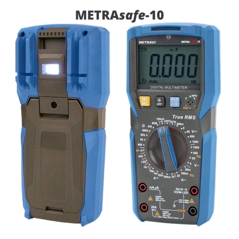The METRAVI Metrasafe-10 Digital Multimeter is a robust, True-RMS auto-ranging meter designed for professional electrical testing. With measurements up to 1000V, 20A current capacity, NCV detection, and advanced safety compliance, it delivers accurate, reliable performance in industrial and field applications.