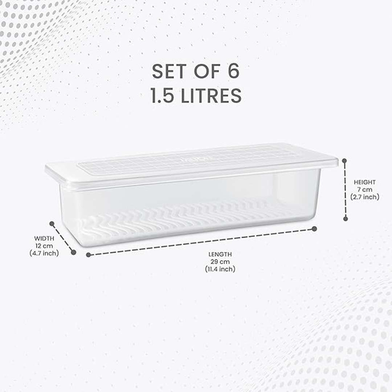The Milton Cryo Fridge Containers (1500 ml, set of 6) are designed to keep your fruits, vegetables, meat, and other perishables fresher for longer. Made from BPA-free, food-grade plastic, these containers feature a water-drain tray, secure-sealing lids, and a transparent, elegant design for easy visibility. Durable, freezer-safe, dishwasher-safe, and stackable, they help you organize your fridge efficiently while maintaining hygiene and freshness.