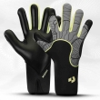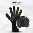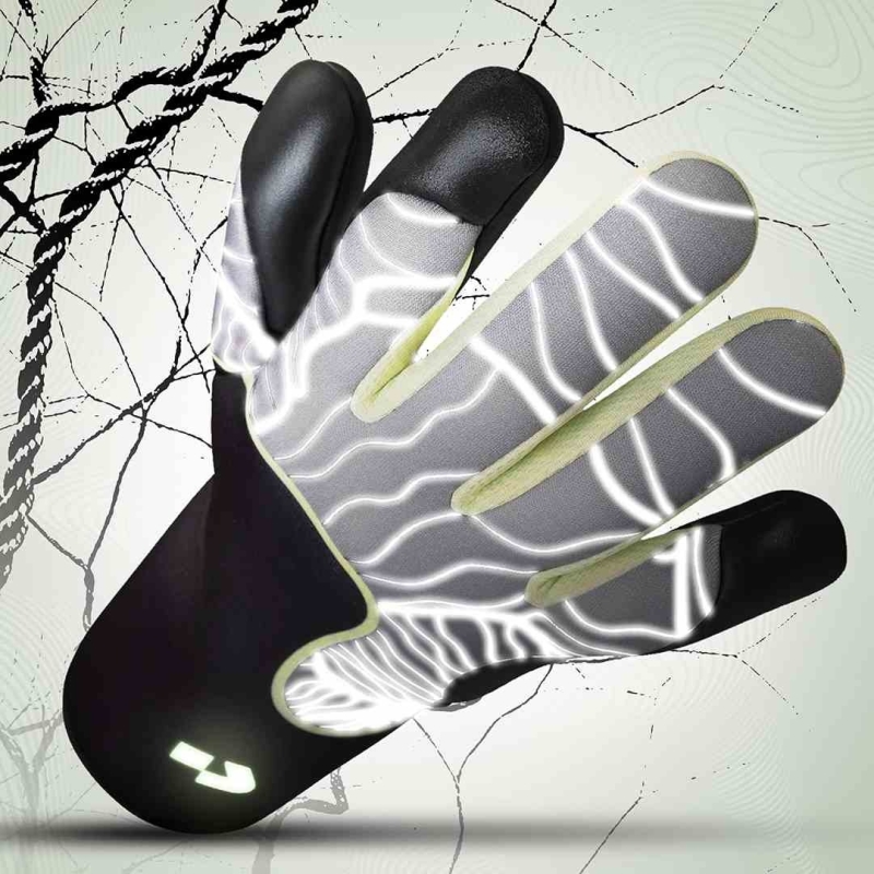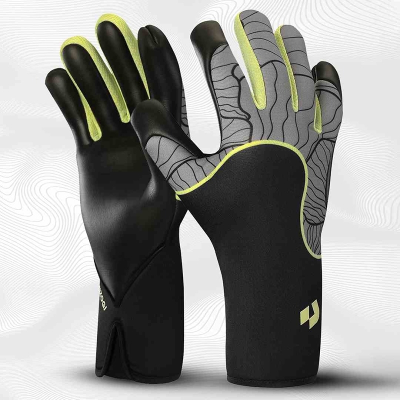 Mizogi goalkeeper gloves feature a 4mm latex palm for superior grip, a hybrid negative cut for enhanced fit, and ThumbWrap technology for added stability. Designed with breathable Breathaprene material and a secure wrist closure, they offer comfort, control, and performance for goalkeepers of all levels.
