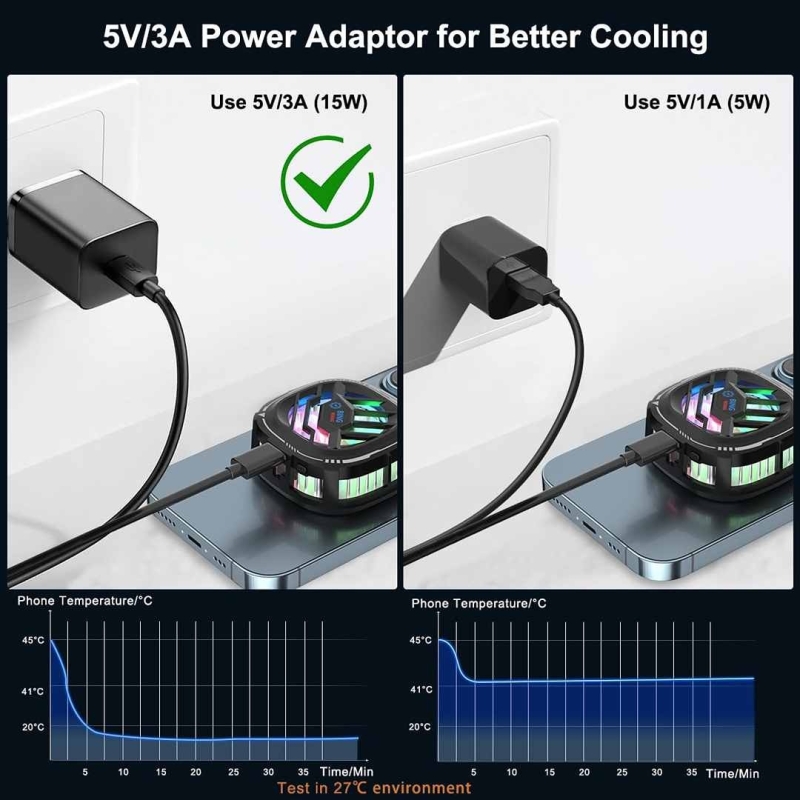 | Cooling Performance | Drops phone temp from 45°C to 15°C (27°C ambient) |