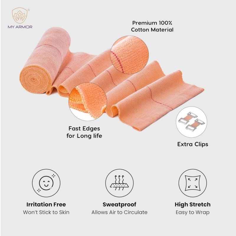 This Premium Cotton Crepe Bandage pack includes two 6cm x 4m elastic bandages made from soft, breathable, high-quality cotton. Designed to deliver firm compression and support, it is ideal for pain relief, injury recovery, and sports use. Washable, reusable, and easy to apply, it provides stability for the ankle, knee, wrist, hand, and legs without restricting movement. A dependable choice for first-aid, daily wear, and athletic needs.
