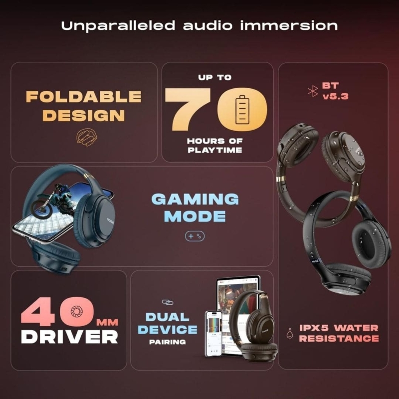 Enjoy uninterrupted music with the Noise Airwave Max 3 Wireless On-Ear Headphones in blue. Featuring Bluetooth 5.3, 70 hours of battery life, fast charging, and a sweatproof design, they deliver rich sound via dynamic drivers. Lightweight and water-resistant, they include a built-in microphone and pair seamlessly with cellphones, tablets, and laptops—no batteries or assembly required.