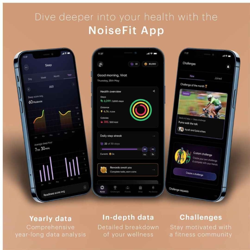 Step up your style and productivity with the NoiseFit Twist Go With a 1.38” display, Bluetooth connectivity, and a 7-day battery life, this smartwatch is a reliable companion for both work and workouts. It offers smart features with a refined design, made in India for the modern user.