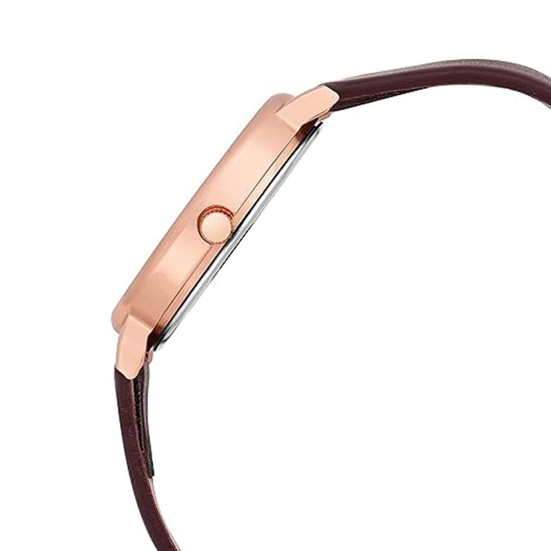 The ON TIME OCTUS is a chic and stylish casual analog wristwatch for women. It features a maroon synthetic leather strap, a round copper-tone stainless steel case, and a multi-colored dial. With a lightweight build and quartz movement, this watch is a perfect accessory for daily wear, offering elegance and comfort.