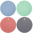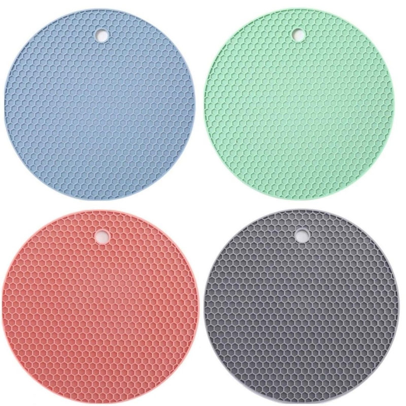 These P-Plus International silicone round trivets are made from 100% BPA-free, food-grade silicone and come in a pack of 4 random colors. Designed to withstand extreme temperatures from –20°C to 248°C (–20°F to 480°F), they work as hot pads, pot holders, spoon rests, jar openers, and countertop protectors. Lightweight, flexible, and non-slip, each 18×18×0.3 cm mat provides safe handling and heat insulation for everyday kitchen use.