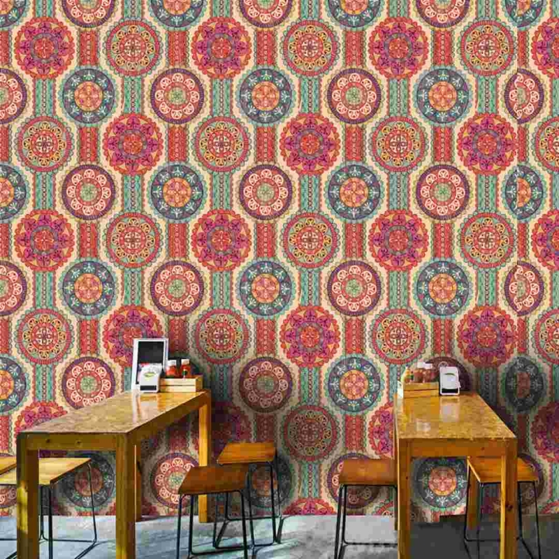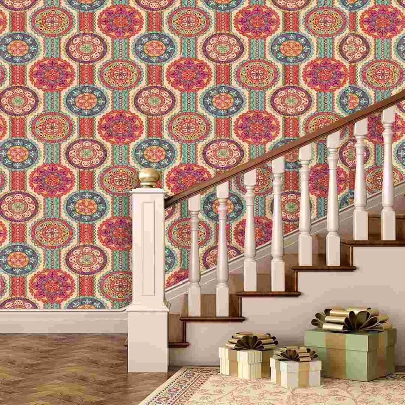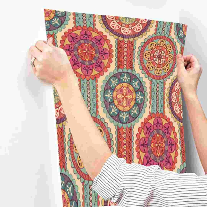 Modern self-adhesive vinyl wallpaper by Paper Plane Design, featuring a stylish Rangoli pattern with a space theme. This removable, stain-resistant wallpaper roll covers 10 sq ft and is easy to install, making it ideal for quick home décor upgrades.
