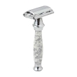 The PEARL Double-Edged Butterfly Safety Razor is a durable brass shaving razor with premium chrome plating, designed for precise beard and moustache grooming. Featuring an ergonomic, slip-resistant handle and water-resistant build, it delivers a smooth, barbershop-quality shave. Includes 5 platinum-coated blades and a microfiber cloth for added convenience.