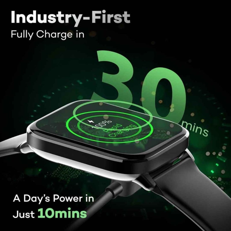 The Pebble Ultra Rapid (Model PFB501) smartwatch combines style with smart functionality, featuring a large 1.83" HD LCD display, Bluetooth calling, and super-fast charging that powers the device fully in just 30 minutes. With real-time heart rate monitoring, blood oxygen (SpO2) and blood pressure tracking, it's built for your wellness. Its lightweight design, 10 MB storage, and fast Bluetooth pairing make it a highly functional, comfortable companion for daily productivity and health tracking.
