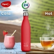 The Pigeon Aqua Scarlet 750 ml double-walled stainless steel vacuum bottle keeps beverages hot or cold for up to 24 hours. Leak-proof, odour-free, and BPA-free, it is dishwasher safe and has an unbreakable body. Ideal for coffee, tea, soup, or water, this durable bottle is perfect for home, office, school, or travel and comes with a 1-year manufacturing warranty.