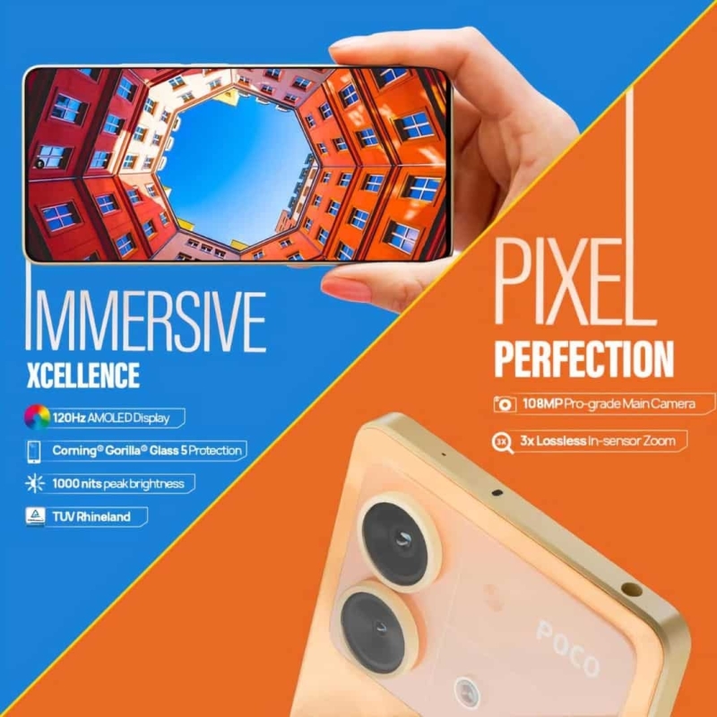 | Product Features | 108MP 3X In-sensor Zoom, Corning Gorilla Glass 5, IR Blaster, 200% Super Volume, AI Camera Features, Film Filters, HDR, Movie Frame |