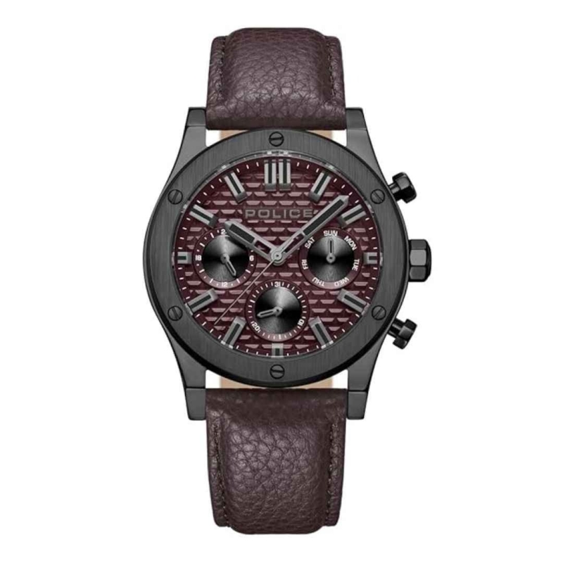 Refined yet bold, the Police PLPEWJF0006203 men's watch is a perfect blend of urban style and reliable functionality. Featuring a rich burgundy dial, rugged gunmetal case, and classic brown leather strap, this 42 mm quartz timepiece is crafted for men who appreciate standout casual fashion. Manufactured in Hong Kong and backed by a 1-year warranty, it's an ideal companion for everyday elegance.