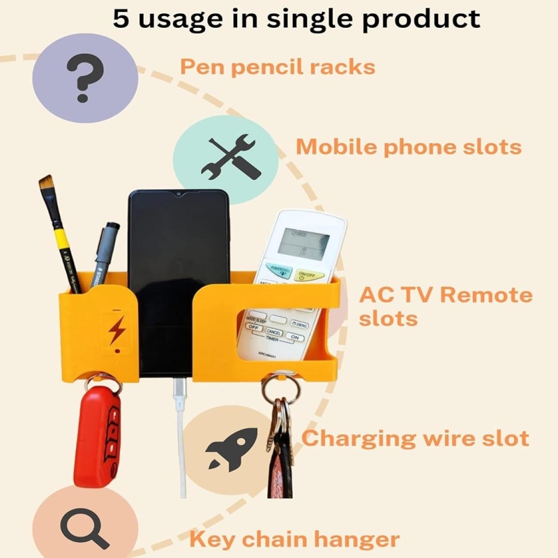 The GEOCARTER Wall Mount Mobile Holder is a compact and stylish organizer designed to keep your mobile phones, remotes, and small electronic accessories neatly arranged. Made from durable polypropylene plastic, this lightweight wall-mounted holder is ideal for mobile charging, remote storage, or key organization. Its space-saving rectangular design makes it perfect for use in homes, offices, kitchens, bathrooms, and living rooms, offering both convenience and modern décor appeal.