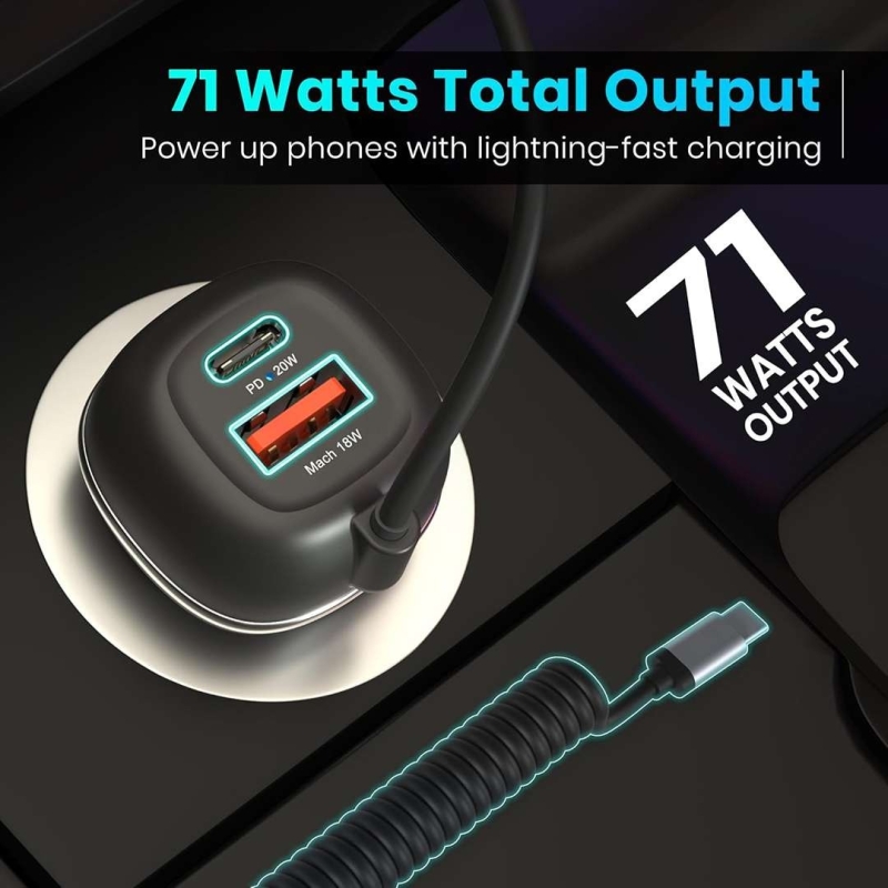 The Portronics Car Power 1C (POR-1873) is a powerful and versatile car charger designed to keep all your devices charged on the go. With an impressive 71W total output, triple charging support, and a 1.8m long coiled Type-C cable, it ensures fast, efficient, and convenient charging for smartphones, tablets, and other gadgets. Its universal compatibility, compact ABS build, and BIS certification make it a reliable travel companion for both iPhone and Android users.