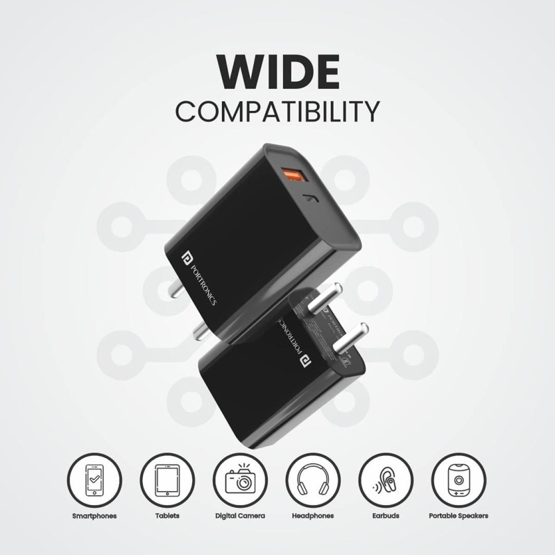 The Portronics Adapto 45 (POR-1445) is a compact and powerful 20W fast charger featuring both USB-A (Mach) and USB-C (PD 3.0) outputs. Designed for smartphones including iPhones and Android devices, it delivers safe, efficient, and intelligent charging with 6-layer protection. With a lightweight ABS plastic build, dual fast-charging support (10W Mach + 10W PD when used together), and dependable safety features, it's a reliable wall adapter for everyday use.
