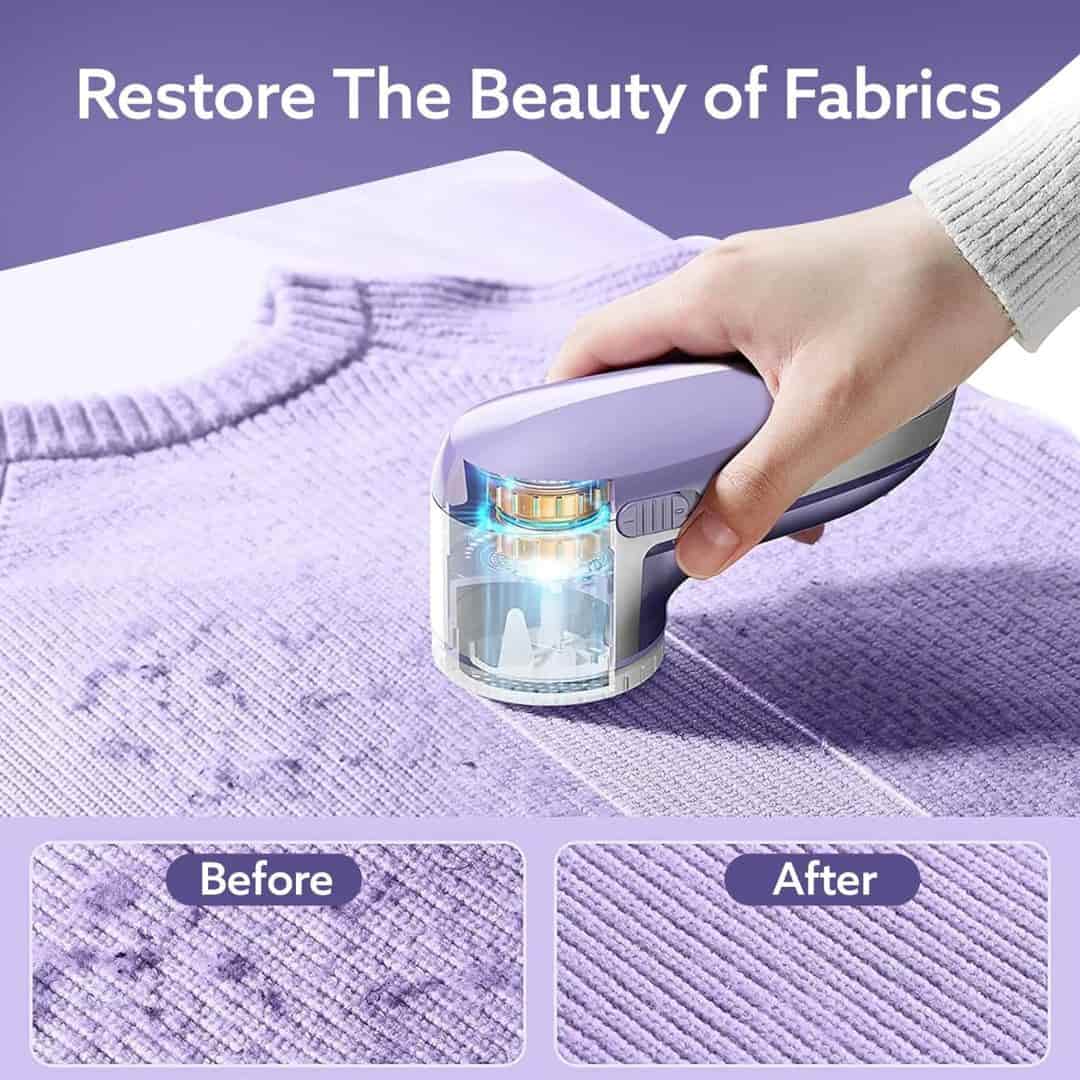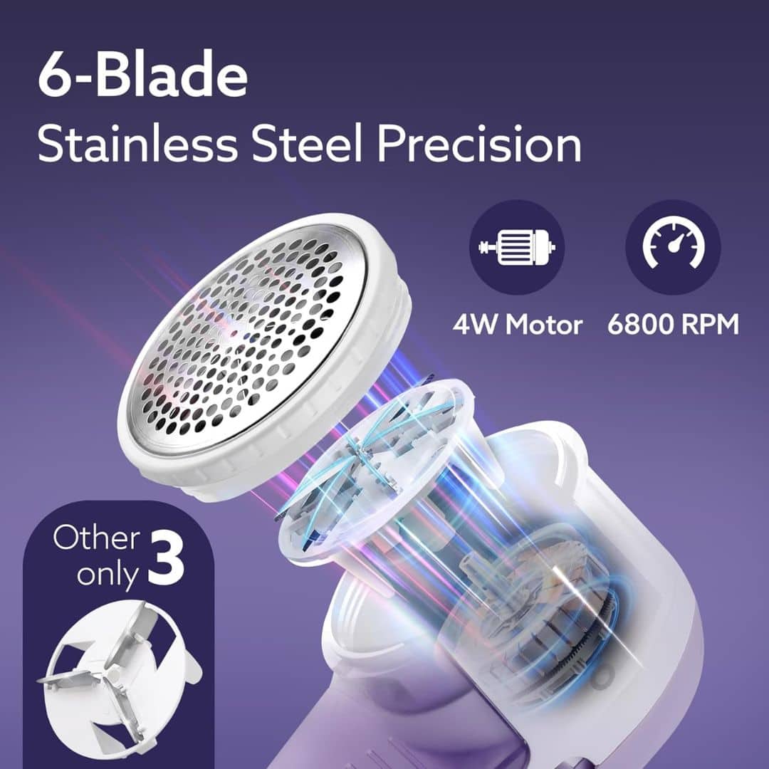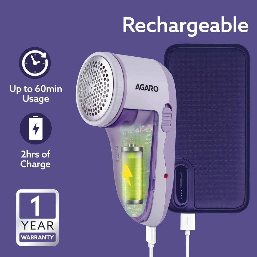 AGARO 2419 Lint Remover, Electric Fabric Shaver, Rechargeable, Stainless Steel Blades, Portable, Multi-Functional Fuzz Remover from Woollen Sweaters, Coat, Blankets,