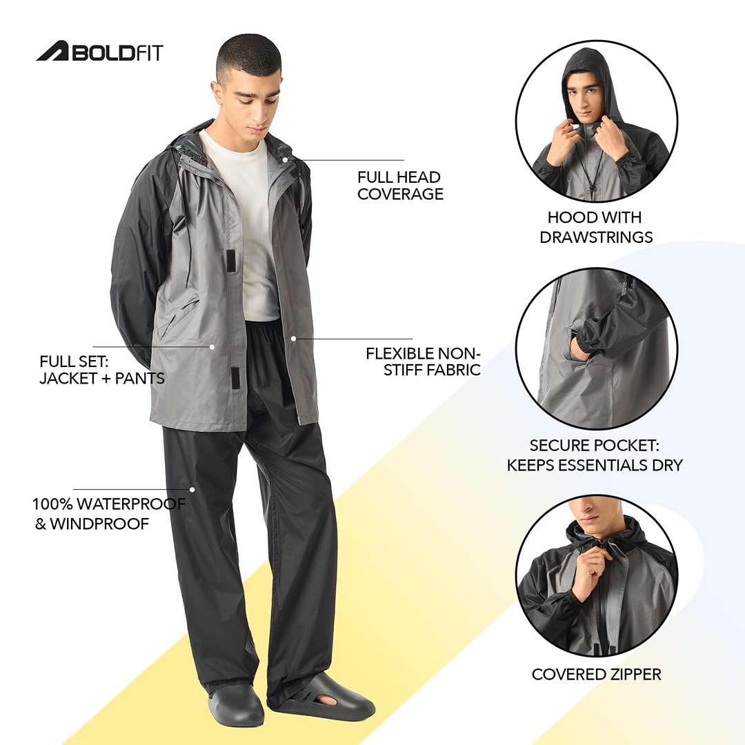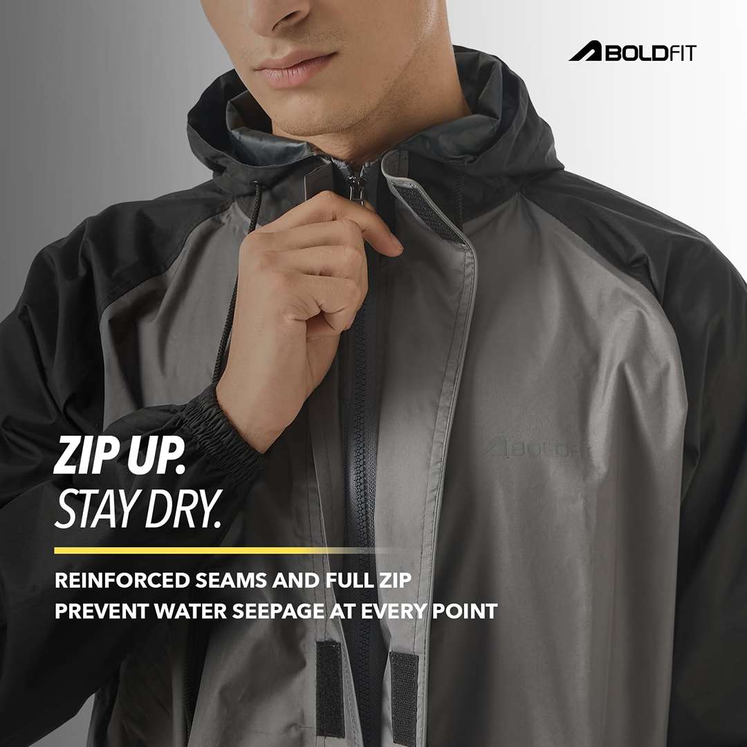 Boldfit Rain Coat For Men Waterproof With Pant Unisex Raincoat For Men Set Raincoat For Women Top & Bottom Combo Easy Adjustable Rain Coat - XL-XXL