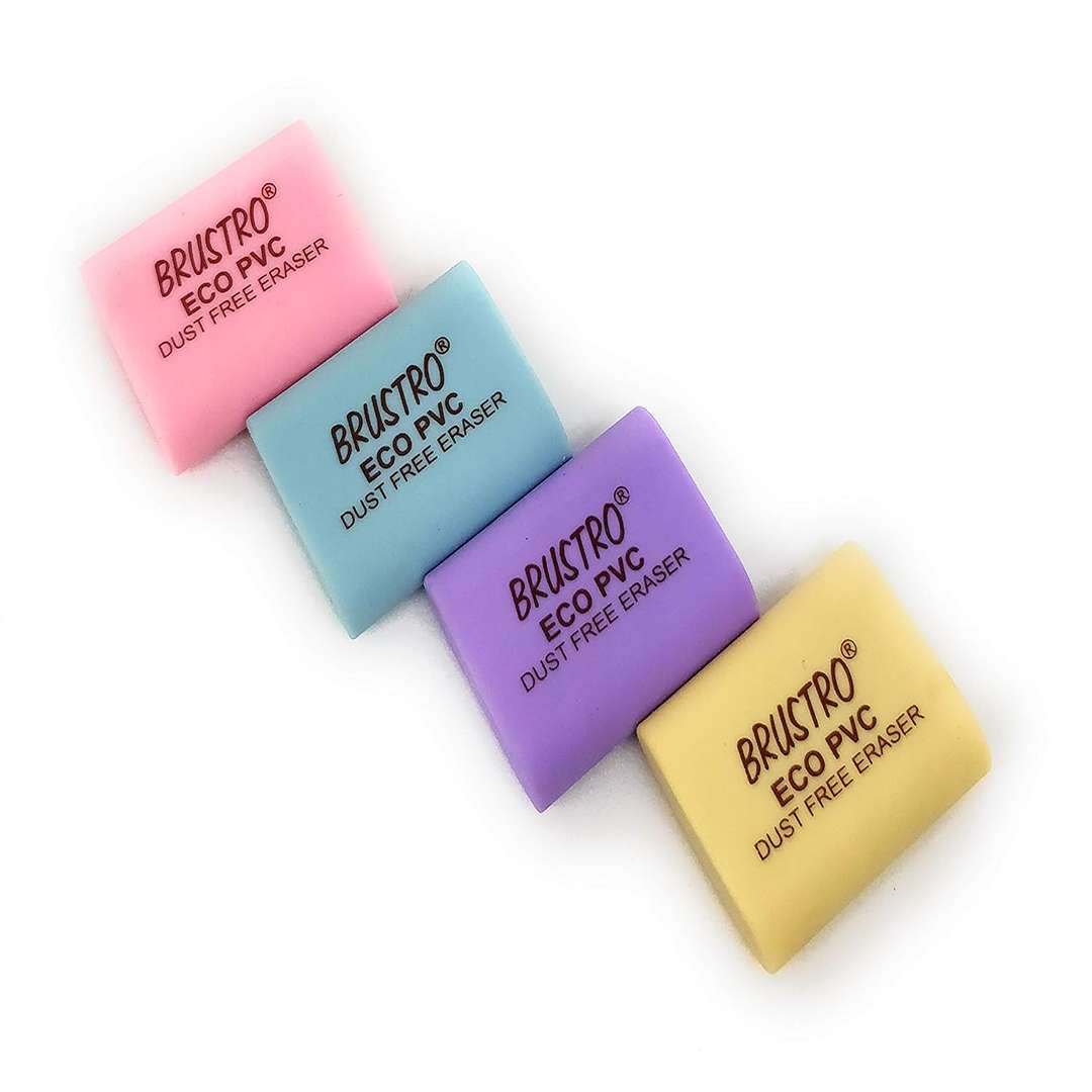 The Brustro Eco PVC Erasers (Pack of 20) are safe, high-quality erasers designed for clean, dust-free performance. Made from non-toxic, phthalate-free PVC material, they erase graphite smoothly without damaging paper. The dust clumps together for a mess-free experience, making them ideal for students, artists, engineers, and designers. Available in assorted colors (pink, blue, purple, yellow), these erasers combine functionality with safety and vibrant design.