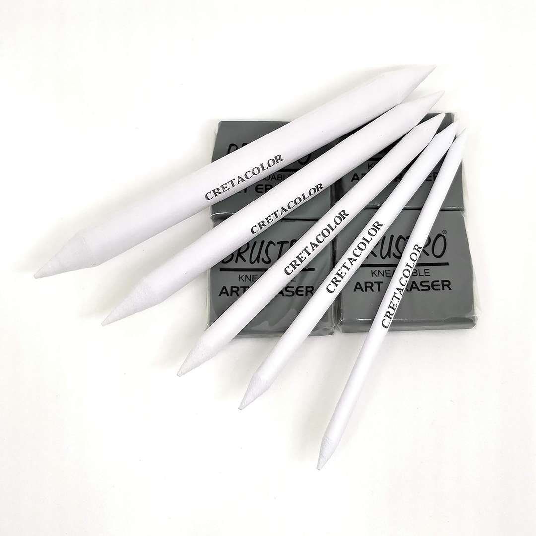 BRUSTRO kneadable art eraser pack of 4 with Cretacolor blending stump set of 5