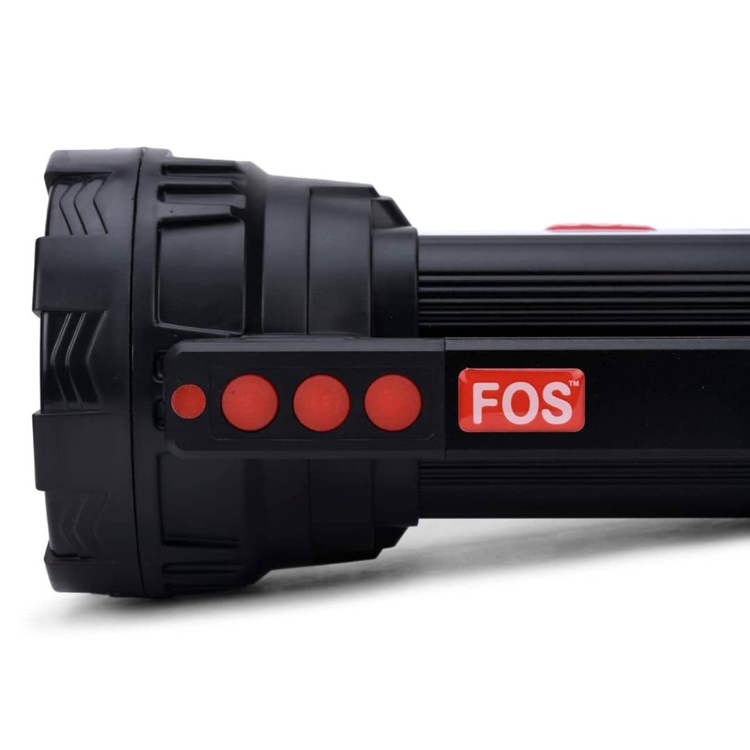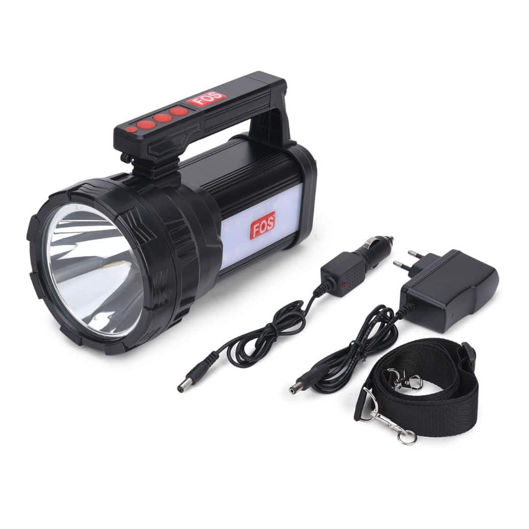 The FOS 15W LED Search Light is a rugged, multi-functional, and portable torch built for high-performance outdoor and emergency use. With a beam range of up to 1 km, this lightweight handheld light offers 3 lighting modes, mobile charging via USB output, and dual charging options (AC wall and car DC). Powered by a high-capacity 6000 mAh lithium battery, it delivers up to 8 hours of continuous lighting, making it ideal for camping, search operations, and portable emergency lighting.