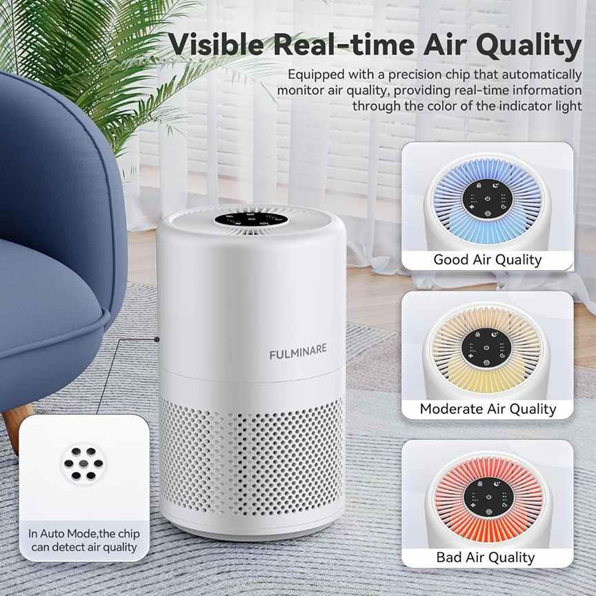 FULMINARE Air Purifier for Bedroom, H13 True HEPA Air Filter 462 Ft² Coverage, Air Purifiers for Home Large Room, Office, LivingRoom, Big Air Cleaner With Sleep Mode, Timer, Child Lock (Big) Pearl