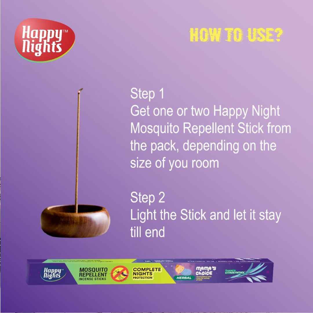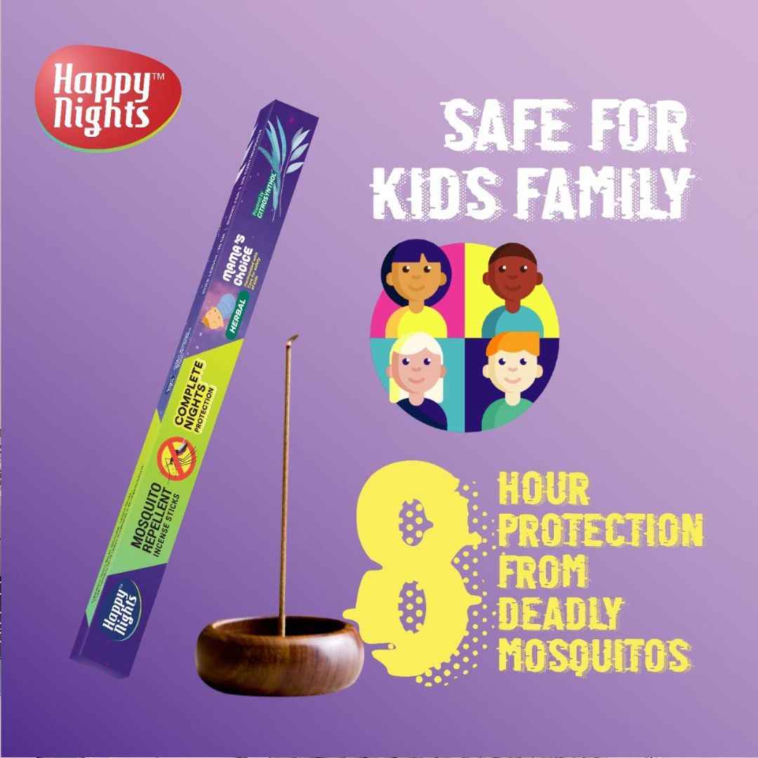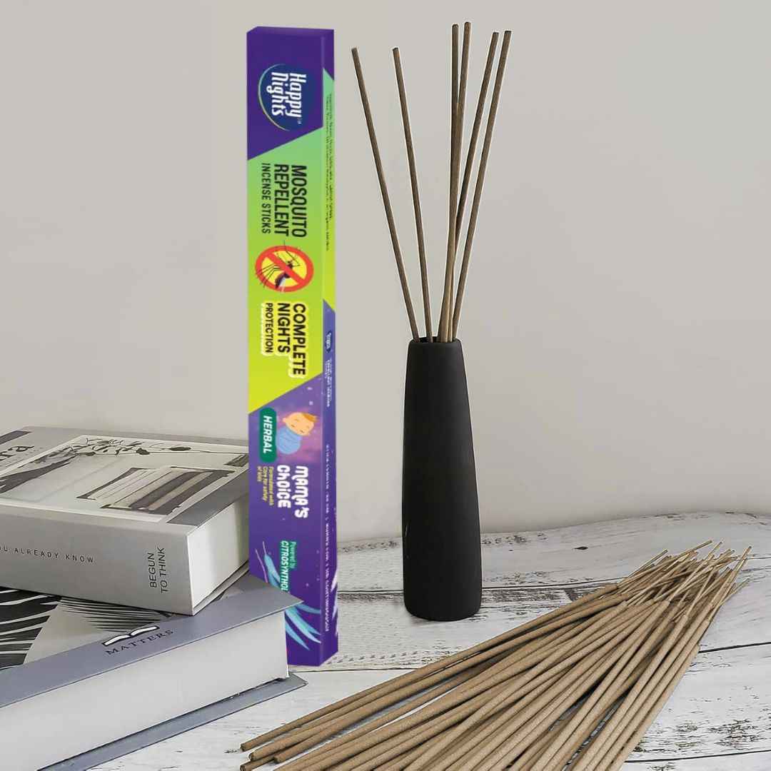 Happy Nights Mosquito Repellent Incense Sticks 1 Hour Burn Time, 8 Hours Protection Herbal Mosquito Agarbatti Long Incense Sticks