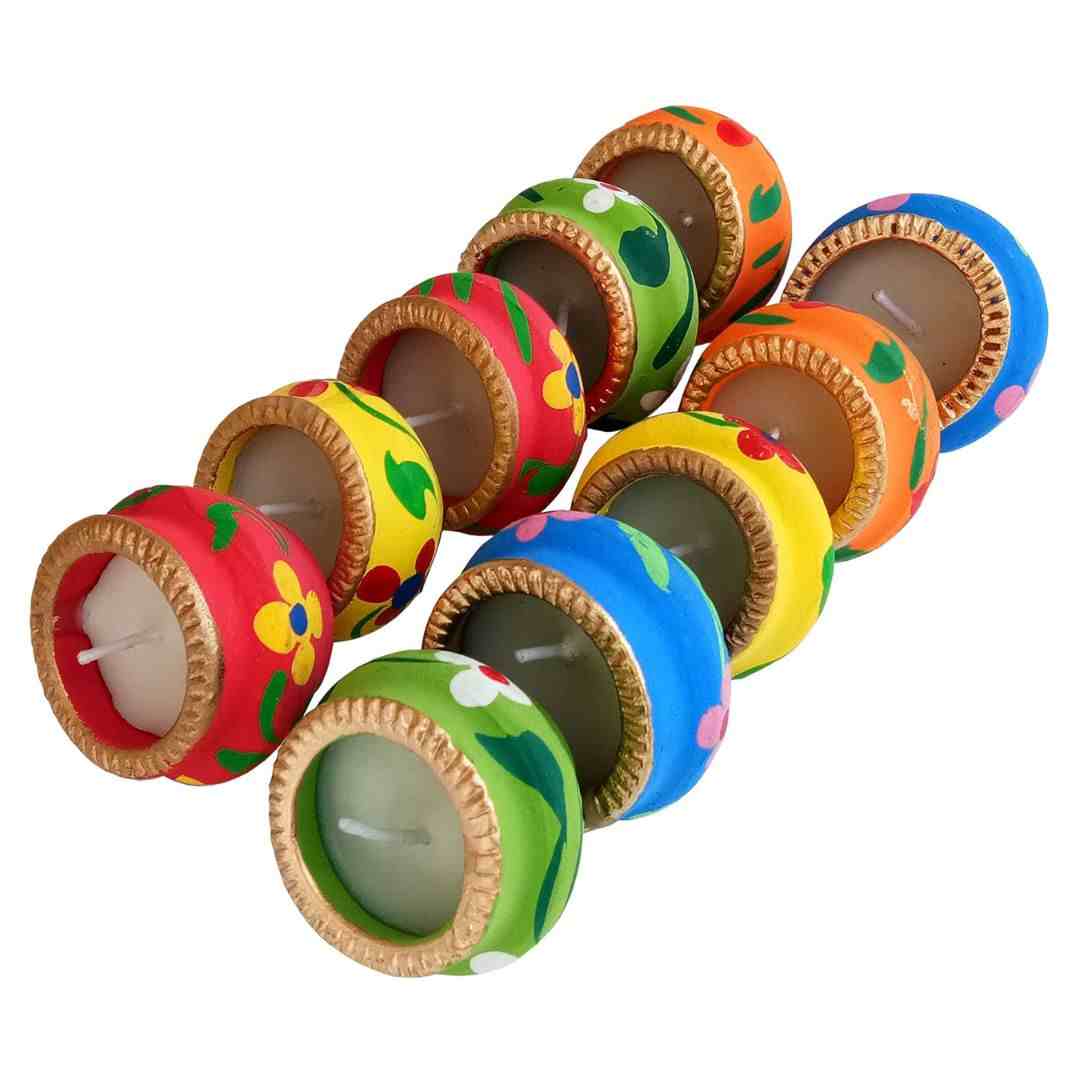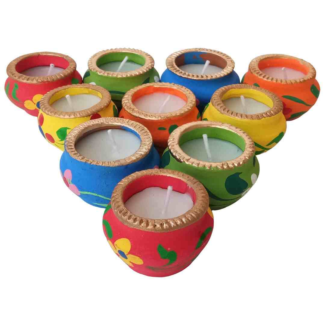 Celebrate festivals with vibrant charm using this Set of 15 Multicolour Wax-Filled Diyas by IndianEcraft. Made from 100% natural terracotta (mitti), these hand-painted earthenware diyas are ideal for Diwali, Navratri, Laxmi Puja, and other festive decorations. Each diya is pre-filled with wax for a long burning time of 4–5 hours, making them both beautiful and practical.