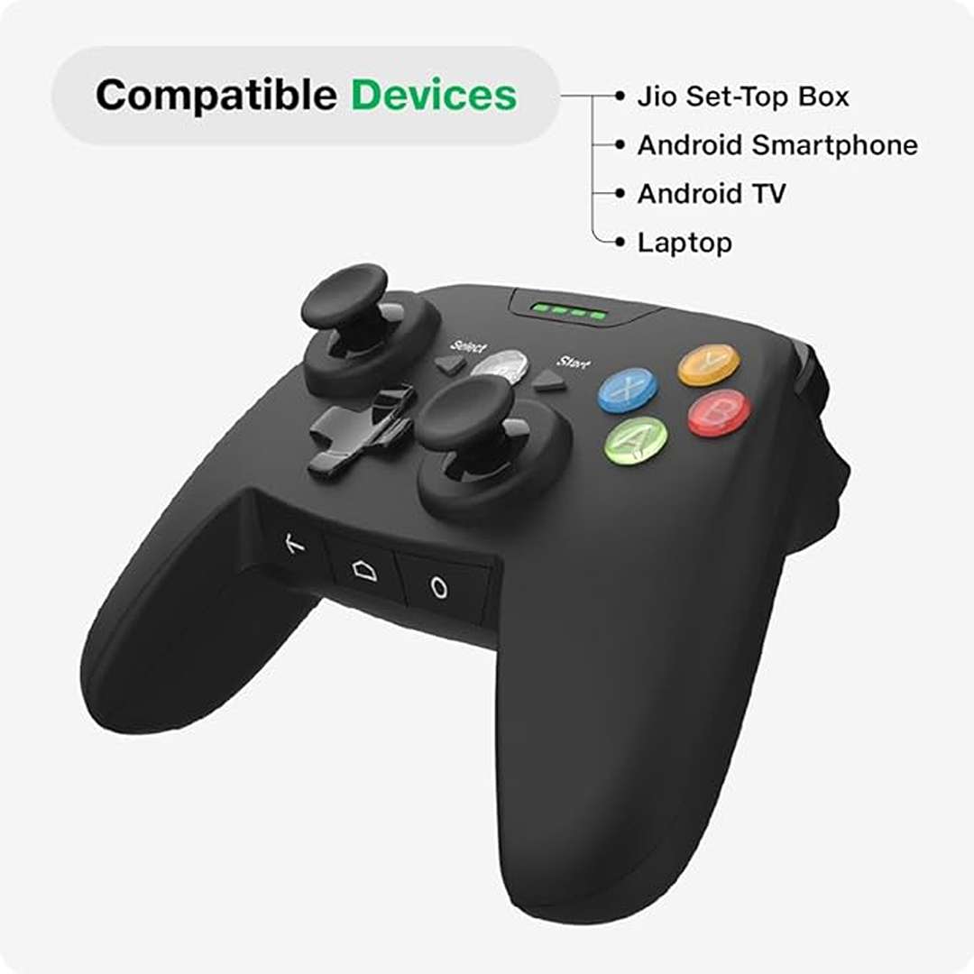 The JIO JGC 100 Bluetooth Gamepad is a lightweight, ergonomically designed wireless controller ideal for Android devices and the Jio Set-Top Box. With up to 8 hours of battery life, low-latency performance optimized for cloud gaming, and immersive features like dual-motor haptic feedback and pressure-sensitive triggers, it delivers a premium gaming experience. Stylishly finished with a matte texture, it’s perfect for extended gaming sessions at home or on the go.