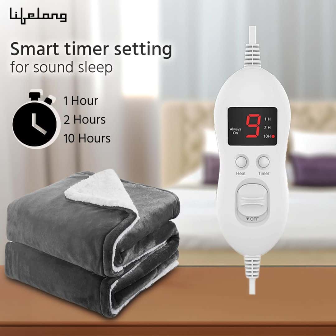 Enjoy instant warmth and comfort during winter with the Lifelong LLHC135 electric blanket. Designed with 9 heat settings, a timer function, and built-in dehumidification, it provides customized heating with advanced safety features. Crafted from machine-washable polyester, this lightweight quilt-style blanket is ideal for adult use.