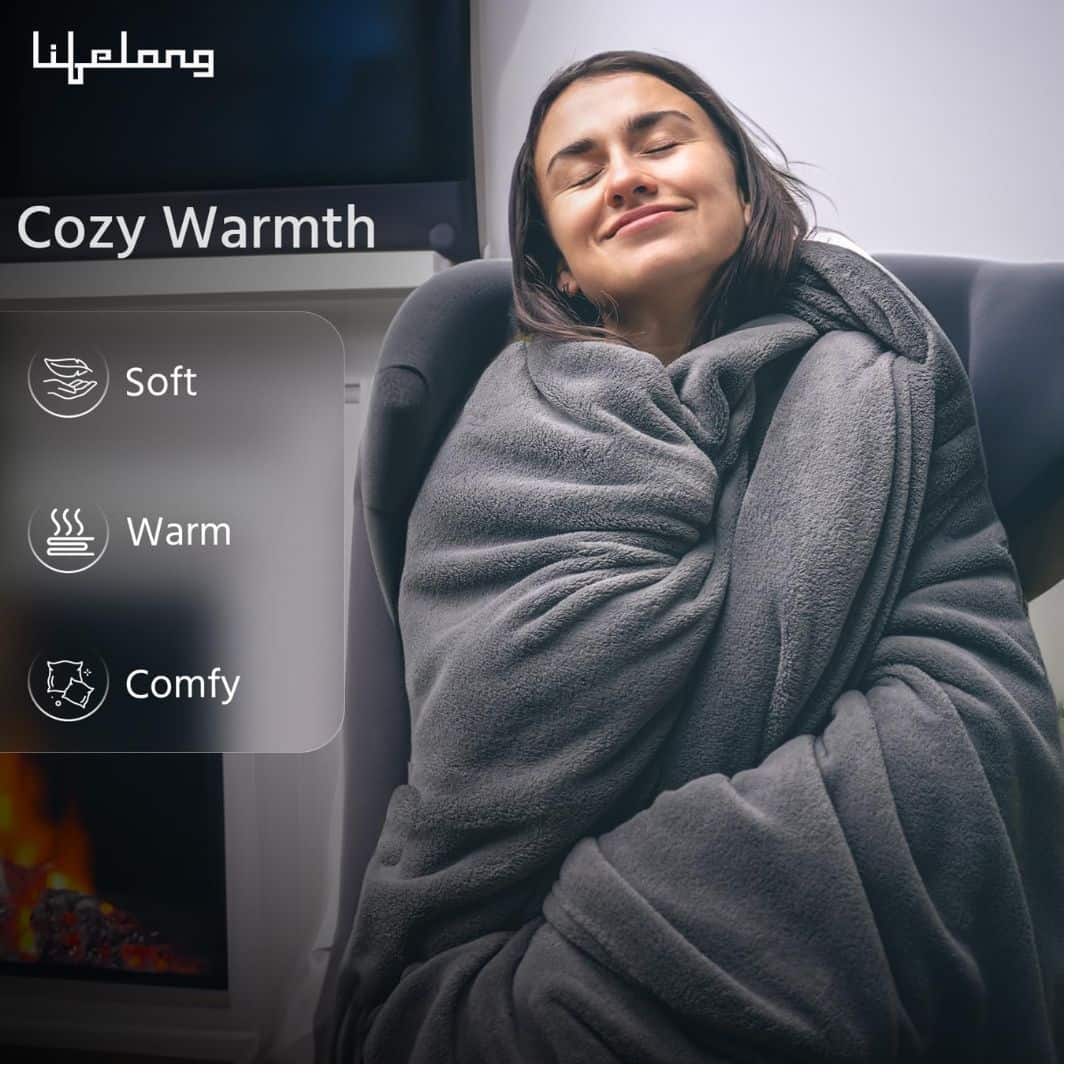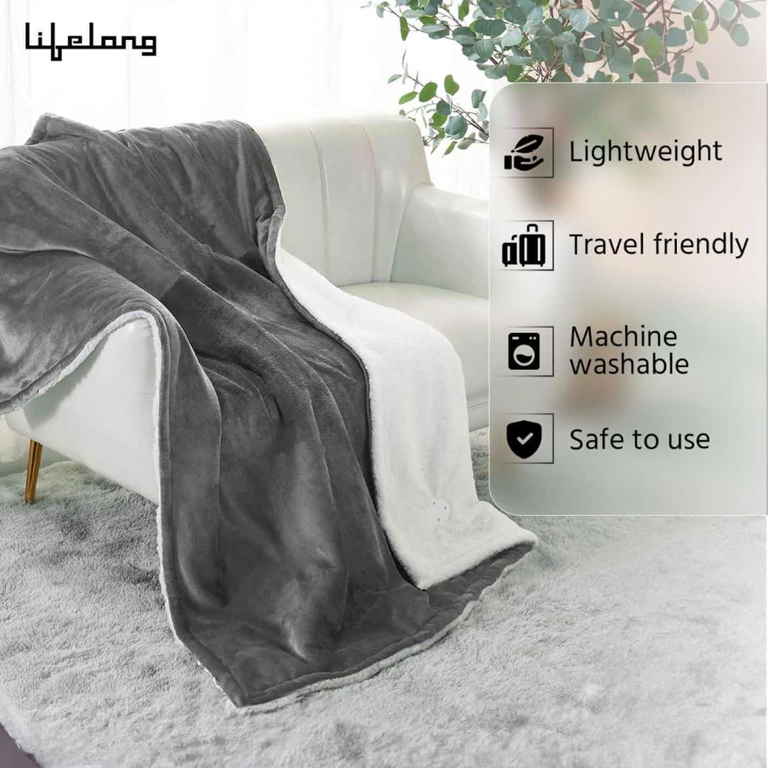 Lifelong Electric Heating Blanket Soft Flannel Heating Blanket59x83(Grey)