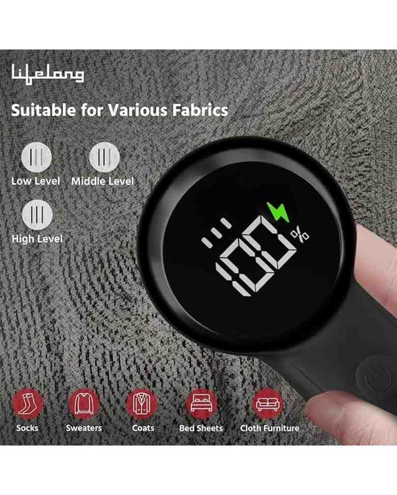 The Lifelong LLELR30 Lint Remover is a compact and automatic fabric shaver designed to effectively remove lint, fuzz, and pills from clothing and upholstery. Made of durable plastic with a sleek black design, it is lightweight, easy to handle, and powered via a Type-C cable. Ideal for home use, it comes with a cleaning brush and user manual for convenience.